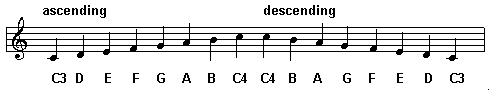 - Write the scale beginning with C3 (middle C) and finishing with C4.This time do the same, but descending (from high to low):