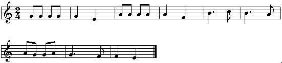 In this English song, with the file name GOODMORN use the notes F, Bb and C with long values of half and whole notes.