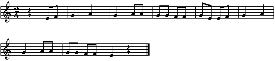 En esta canción inglesa que hay en el fichero GOODMORN utilizad las notas fa, si b y do y valores largos de blanca y redonda.