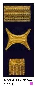 Les arts de la civilització ibèrica Les tribus ibèriques del sudest peninsular i d'Andalusia van organitzar-se en societats elitistes, governades per reis enriquits pel monopoli del comerç amb els pobles navegants que van arribar a aquelles contrades abans d'acabar el segon mil·lenni abans de la nostra era. Per aquesta raó, en aquelles zones s'han trobat grans monuments funeraris i importants conjunts de joies d'or que no trobem en territori de Catalunya. El motiu d'aquesta diferència és el que ja s'ha dit: la societat ibèrica catalana va ser més igualitària, amb un repartiment més equitatiu de la riquesa, el que va impedir que uns pocs individus acumulessin grans béns materials i poder polític i en fessin ostentació mitjançant joies o grans monuments funeraris després de la seva mort. Fins el present, a Catalunya només tenim dues mostres d'escultura d'època ibèrica, més interessants pel seu valor antropològic i històric que pel seu valor pròpiament artístic. La primera és un fragment d'un monument que representava una divinitat asseguda en un tron encoixinat; el lateral del tron portava en relleu una decoració de caps tallats.