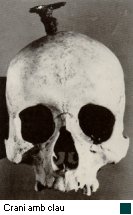 En canvi, una tradició d'origen continental, clarament cèltica, és la del culte al crani, ben documentada entre els indigets de l'Empordà. La decapitació i posterior empalament amb llargs claus de ferro de cranis masculins, potser enemics, associats en algun cas a edificis culturals, devia anar acompanyada d'algun tipus de ritual. |