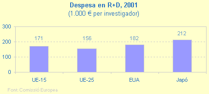 Compara les xifres d'inversió en R+D de la UE-15, els EUA