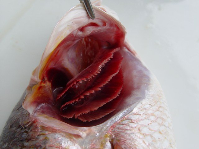 LES BRÀNQUIES SON UNES LÀMINES ROGES PLENES DE VASOS SANGUINIS QUE ESTAN AL COSTAT DEL CAP DEL PEIX. L'OXIGEN DE L'AIGUA PASSA A LA SANG I ES REPARTEIX PER TOT EL COS.