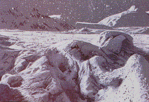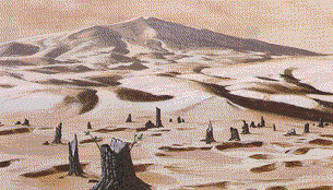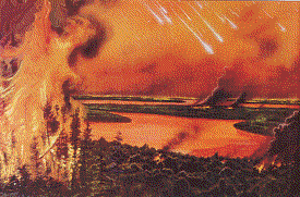 red sheet of glowing lava. Large animals are broiled. Only animals with