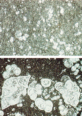 a microscopic planctonic species, while the Tertiary sample contains far