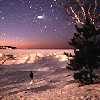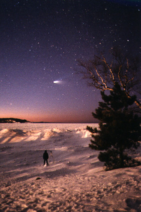Autor: Brian Halbrook Localitat: Llac Superior, glaçat Equip:objectiu 28mm f/2.5, pel.lícula Royal Gold 1000. 35 segons d'exposició. Una sessió d'observació del Hale-Bopp a Presque Isle Park es va convertir en un espectacle public improvisat. |