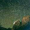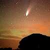 Autor: Eduard Garcia Localitat:Cap de Rec (Lleida) Equip: 180mm f/2,8. Exposició: 4 minuts amb Fuji 800. La foto del cometa està feta al refugi de muntanya Cap de Rec (2000 metres sobre el nivell del mar). |