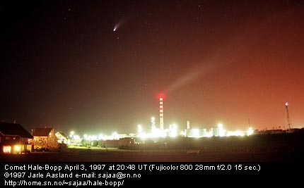 Aasland (sajaa@sn.no) Localitat: Stavanger, Norway (Latitude: 58° 58' 12" North, Longitude: 5° 45' 0" East) Feta amb temps ventós i fred, però molt clar. Sembla que molta gent va aprofitar aquesta oportunitat per observar el cometa. Un dels que surt a la foto va comentar que era la primera nit d'aquest mes que veia el cel clar. Aixó no és del tot cert, però cal admetre que hem tingut temps canviant i que el mal temps general ha estat una mica frustrant. 15 segons d'exposició. |