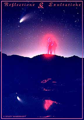 Red ReflectionsAutor: Dewey Vanderhoff Aquesta és la foto del Hale Bopp que més m'agrada, de moment. Es tracta d'un autoretrat en el que em vaig il.luminar jo mateix amb un llum vermell. Mack Frost va disparar la càmera. |