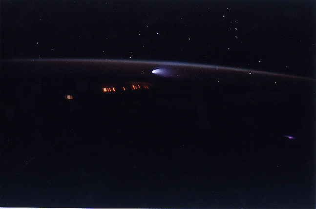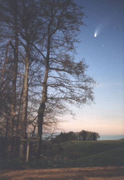 Autor: Paolo Candy Localitat: Astr. Station Club Parco dei Cimini, Viterbo (Italia) 800 metres d'alçada; 42.41 graus de Lat. i 12.1 graus de Lon. Equip: Nikkor 135 mm f/2,8 amb muntura SP, JMI Mototrak V 80A i filtre YA2 (pel sodi) Exposició: 15 min. amb Kodak TP 2415 Hyp. Guiada amb C5 seguint el nucli del cometa. Cel clar. |