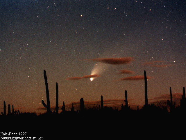 Autor: Bob DuBrall Localitat: Saguaro National Park, Arizona. Exposició: 50mm, f/2.8. 60 segons amb Fuji 800. Els cims estan il.luminats pels llums de Tucson city. |