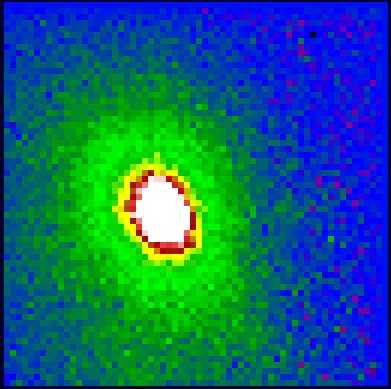Localitat:European Southern Observatory, La Silla, Chile Equip:Thermal Infrared MultiMode Instrument (TIMMI) al telescopi de 3,6 m de l'ESO . Després de passar pel periheli l'1 d'abril de 1997, el cometa Hale-Bopp es va dirigir cap al sud. Durant uns dos mesos (de mitjans maig fins mitjans juliol) ha estat quasi impossible obtenir imatges convencionals amb detectors òptics per la seva proximitat visual al Sol. Hans-Ulrich Kaeufl (ESO) i Yan Fernandez (Univ. of Maryland, USA) han obtingut imatges infrarrojes des de l'observatori de La Silla, mitjançant la càmera TIMMI (Thermal Infrared MultiMode Instrument) al telescopi de 3,6 m. Les imatges es van obtenir durant una observació diurna amb el cometa a només 31º de distància angular respecte el Sol, que és la mínima distància que permeten els instruments emprats. El cometa es trobava "a l'altre costat" del Sol quan es va obtenir aquesta imatge, a una distància de la Terra de 2.785 UA (417 milions de km). La cua estava dirigida cap a l'altra banda. L'angle Sol-cometa-Terra (la fase) era de només 15º. |