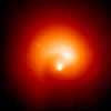 Març 27, 1997 Observacions efectuades amb el Hubble Space Telescope de la zona que envolta el nucli del Hale-Bopp, fetes en tres dates distintes a partir del setembre de 1995. Reflexen els canvis del nucli a mida que s'ha anat escalfant en acostar-se al Sol. Figura 1: Imatges del Hale-Bopp fetes amb el HST en 8 dates diferents. Totes les imatges ténen la mateixa orientació (el nord és a dalt i l'est a l'esquerra), es van processar amb escala d'intensitats logarítmica i amb la mateixa resolució espacial de 470 km per pixel: uns 33000 km a la distància del cometa. El nucli, que medeix menys de 40 km, és invisible. La imatge del 26 de setembre de 1995 es va fer ~60 hores després d'una forta erupció de pols i mostra un raig espiral que envolta el nucli. Les imatges fetes a la tardor de 1996 mostren raigs, que probablement ténen relació amb l'activació de cràters a la superfície del nucli. La imatge del 7 d'abril de 1996 va sortir una mica moguda. Figura 2: La mateixa que la Figura 1, excepte per la diferent escala de color emprada, per augmentar el contrast. Molta gent troba més maca aquesta versió. La imatge original (1) té, però, més valor científic. Figura 3: Aquesta és la foto es va fer el 26 de setembre de 1995 amb la càmera WFPC2 en modalitat de gran camp. Abasta uns 10 segons d'arc, uns 47,000 km a la distància del cometa. El braç espiral es va captar per casualitat. Figura 4: Aquesta imatge es va fer el 23 de setembre de 1996 amb la càmera WFPC2 en modalitat planetària. Abasta 10.9 segons d'arc, uns 23,360 km a la distància del cometa. La coma presenta un aspecte molt diferent del que tenia al 1995: diversos raigs li dónen aspecte eriçat. Figura 5: La mateixa imatge precedent processada dividint el valor de cada pixel pel d'una imatge obtinguda amb la mitjana atzimutal. Aquesta tècnica destaca els raigs en eliminar la lluminositat radial difusa. El nucli està al centre geomètric de la imatge, just per sota del raig brillant que surt cap a les onze. Sembla que va tenir lloc una erupció poc abans d'aquesta observació. Una mica més lluny s'hi veu una altra zona brillant que pot correspondre a una erupció prèvia. Seguint amb la mateixa comparació del rellotge, el nord és a les 12 i l'est a les 9. S'hi veuen altres raigs més febles a la 1 a les 3, a les 10 i a les 7:30. Aquesta imatge demostra gràficament que el nucli del Hale-Bopp és un lloc molt actiu. La llargària del raig de les 11 és de 0,96 segons d'arc (2050 km reals). Credits: Harold Weaver (Johns Hopkins University) and NASA |