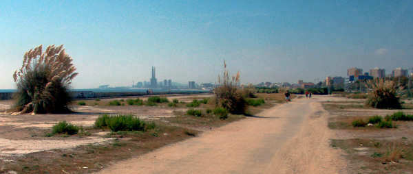 12:29. Aunque el día es brumoso, en el horizonte se distinguen Montjuich y las chimeneas de la central térmica del Besós.