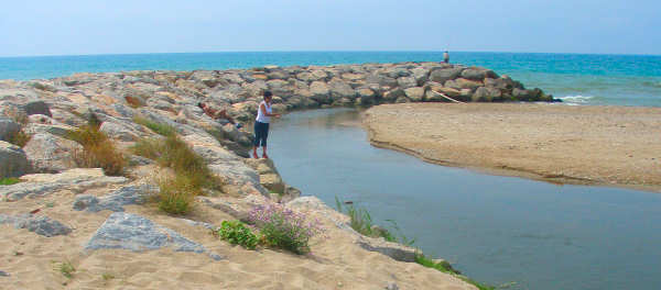 11:30. Los últimos obstáculos antes de llegar al Remolar: un espigón, un riachuelo...