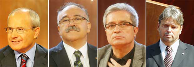 Montilla, Carod, Saura i Benach, d'esquerra a dreta.