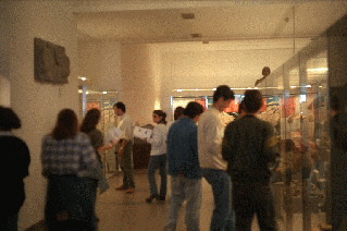 El museu de les ruïnes d'Empúries té una instal.lació que permet apreciar molt bé les peces, mercès a unes vitrines i a una il.luminacio escaients. L' escassedat de peces trobades i exposades fa que el museu sigui petit. Però les peces exposades són les més significatives, per més que algunes peces originals de gran vàlua són a la seu de Barcelona del Museu d'Arqueologia de Catalunya. A la part alta d'aquesta fotografia veiem el cap de l'estatua del déu Esculapi, la troballa més remarcable de les ruïnes. Al mur, un relleu amb esfinxs contraposades.