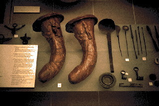 En mig dels atuells domèstics o quirúrgics com són les culleretes, les espàtules i les claus de pany, ens sorprenen uns embuts d'inspiració fàl.lica fets de terra sigillata i unes peces de bronze més petites però d'idèntica intenció. Les terracores tenen uns relleus eròtics gravats mitjançant un motllo. No han de causar escàndol: entre els romans són molt freqüents i s'interpreten com a amulets que porten bona astrugància. Les peces grosses semblen destinats a l'exhibició, però les de bronze són portàtils i feien com d'amulet. Plaïa tocar-los i calia dur-los a sobre en tot moment. Igual que les medalles que actualment es porten penjades al coll, usaven aquestes peces transportables per a obtenir-ne protecció.