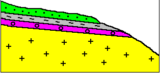 19. Indica en el tall geològic per on aflora l'aigua de pluja que es filtra dins dels gresos?: