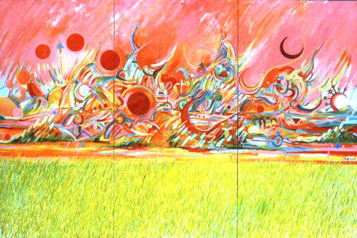 Estas pinturas se generan en un breve período de investigación pictórica y transición en la obra del pintor, donde podemos observar influencias y referencias formales y cromàticas al arte, la cultura y el paisaje hindúes.