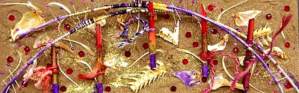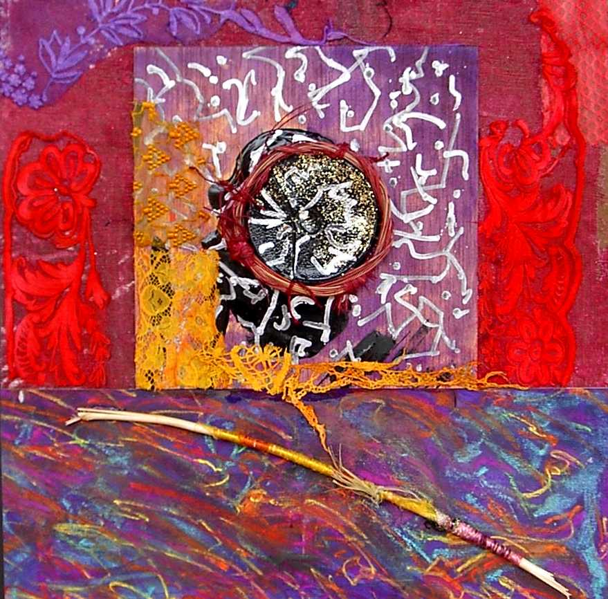 La composición y el color evocan ciertos el trabajos pretéritos del pintor que enlazan con propuestas y mensajes de nueva factura, de tinte intercultural, que se combinan y entrelazan con un sinfín de objetos cuya presencia, forma, significado, textura, color y riqueza establecen, por sí mismos, un diálogo, a veces ritual, que el artista aborda y modera con la vocación de un chamán locuaz y las artes de un pintor que ha enmudecido.