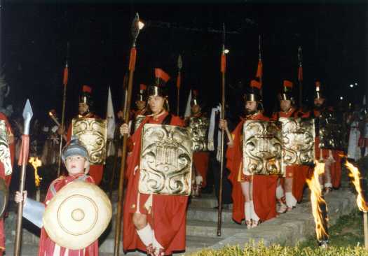 En els anys 40, ja hi havia tropa de soldats romans i banda, amb el seu centurió abanderat i el capità manaire, escortats enmig d'una tropa de 12 soldats.