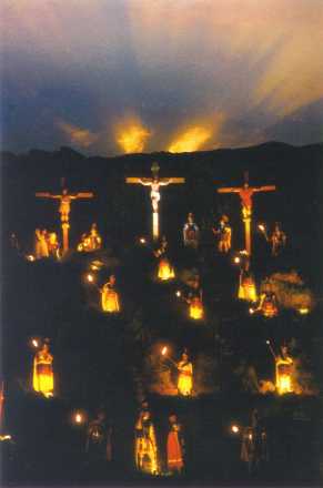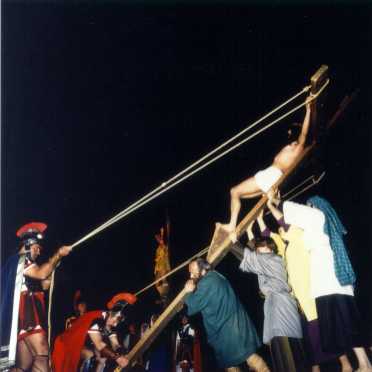 Una de les escenes més emotives que dóna renom al Via Crucis Vivent és l'escena del Calvari, situat als afores de la població, on la magnífica interpretació dels soldats romans juntament amb una excel·lent il·luminació tot això subratllat amb l'acústica de la música, captiva a propis i estranys i crea un espectacle digne de ser una de les representacions amb més carisma del nostre país.