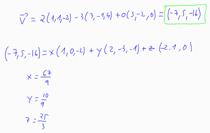 = {(1, 1, -2); (3, -1, 4); (5, -2, 0)} les components d'un vector