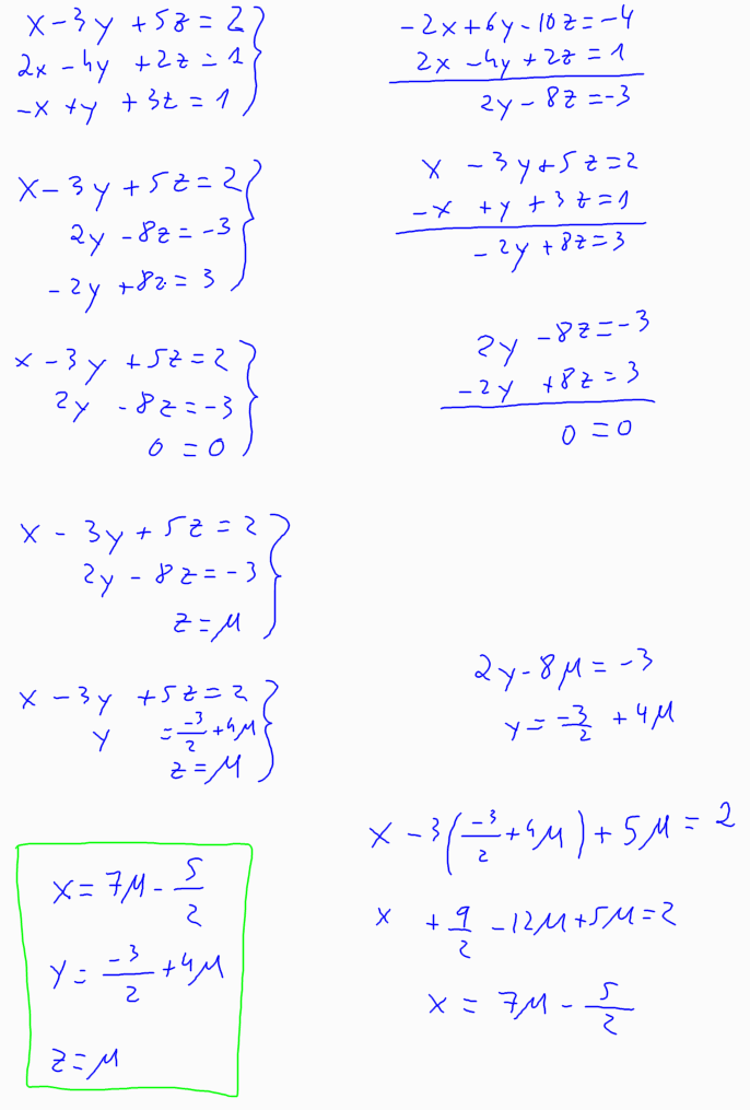 Sistemes d'equacions - Mètode de Gauss Què li passa (i quč hem de fer?) segons sigui d'un tipus o d'un altre, un sistema d'equacions lineals quan el resolem pel mètode de Gauss? Si el sistema és compatible determinat ![]() Si el sistema és compatible indeterminat ![]() Si el sistema és incompatible ![]() |