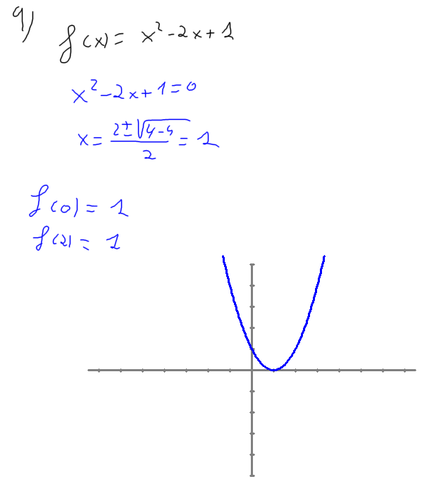 1-Tenim la funció f(x) = x2 - 2x +1. Existeix un c tal que f(c) = 0? Explica si a aquesta funció es pot aplicar el teorema de Bolzano a l'interval [0, 2].