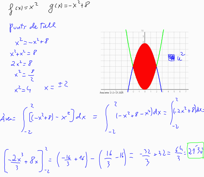 8-Calcula l'àrea entre les funcions