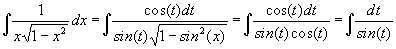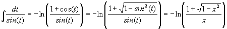 Finalment per fer la integral de 1/sin(t), cosec(t) que hem calculat anteriorment i desfem el canvi: