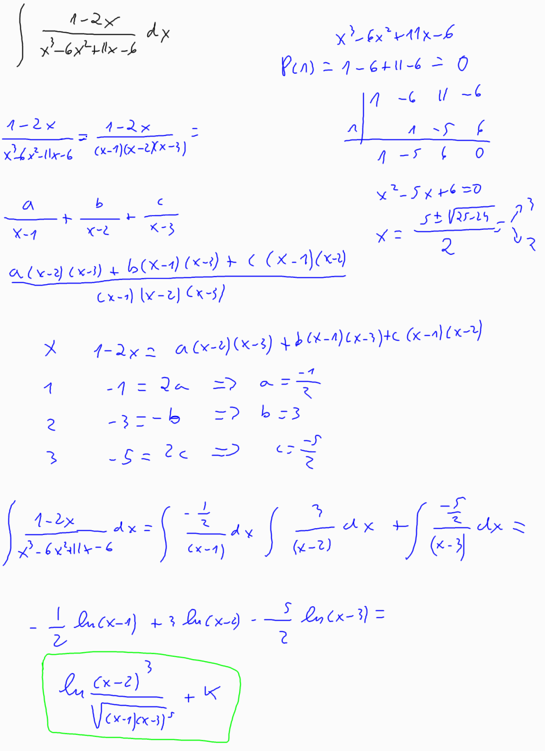 Exercicis de càlcul de la integral indefinida de fraccions racionals