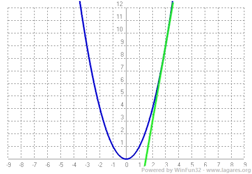 Càlcul de la recta tangent a la corba `f(x) = x^2` en el punt `x=3`
