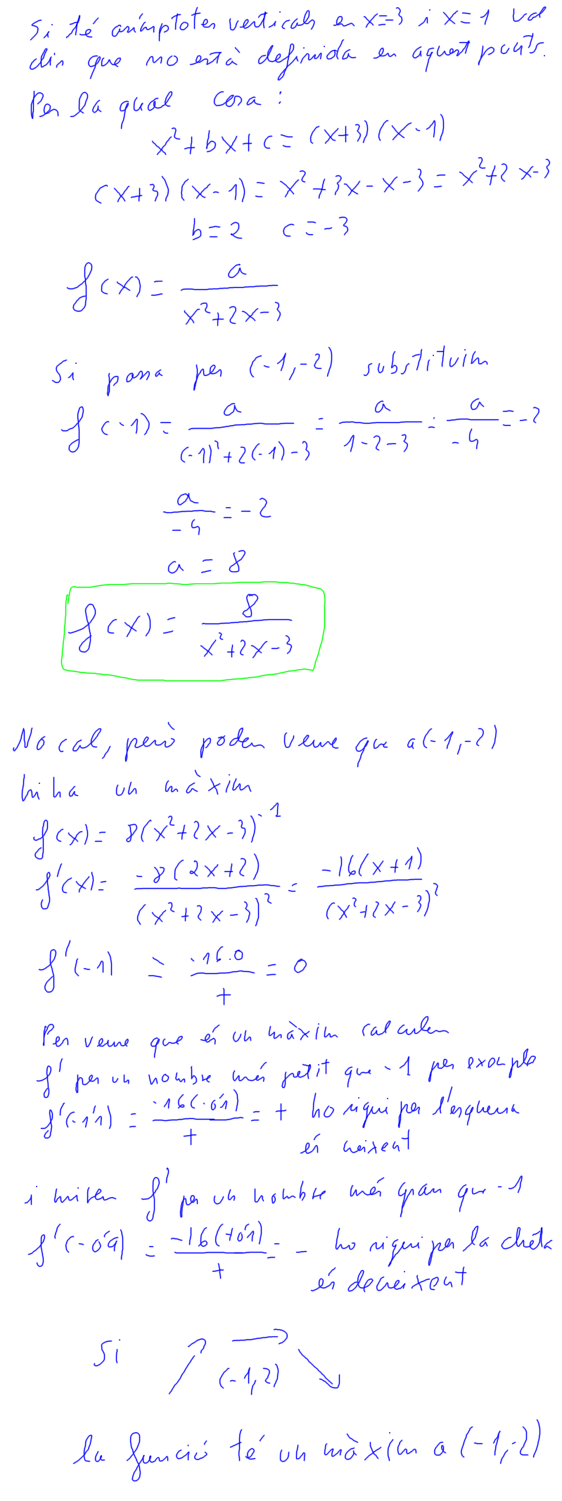 (2010-juny-5) 3. Determineu el valor dels paràmetres a, b i c perquè la gràfica de la funció sigui la següent: