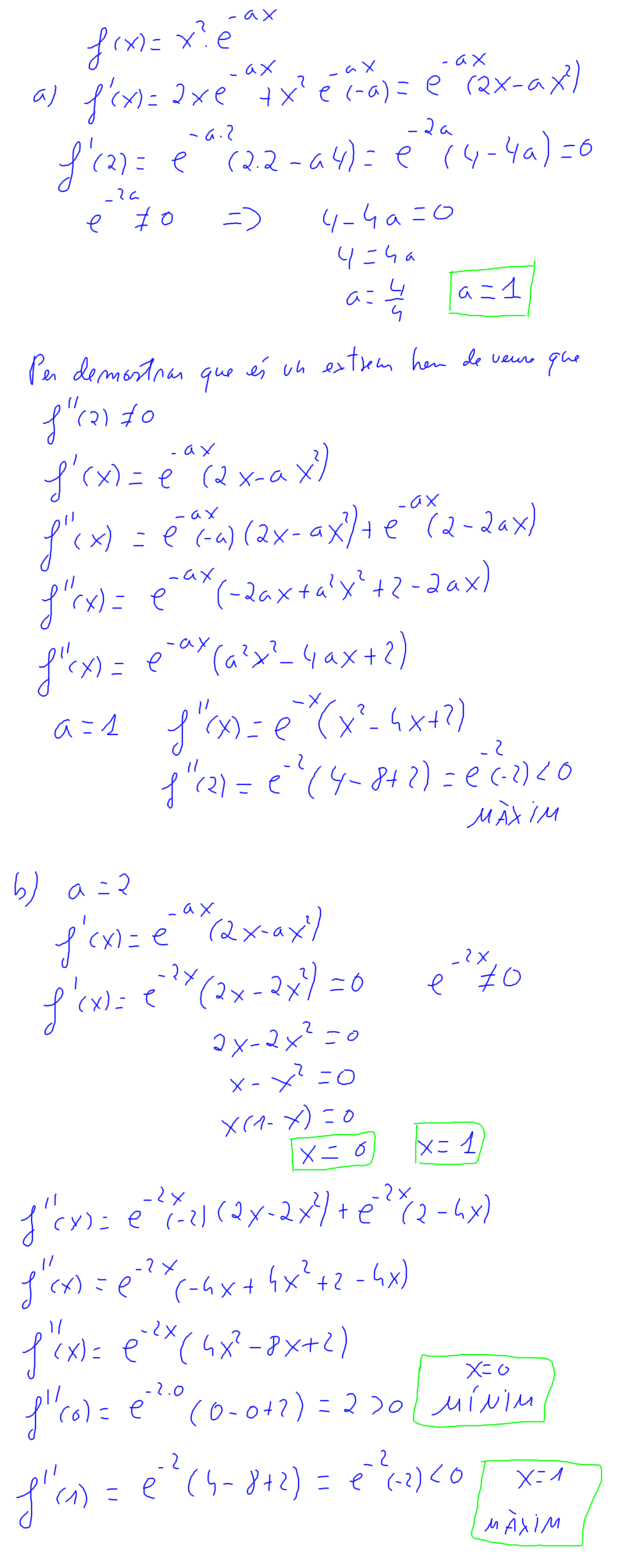 b) Quan a=2, classifiqueu-ne els extrems relatius.