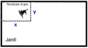 La Núria té un jardí rectangular i vol fer-hi un tan-cat (rectangular o quadrat) de `8` `m^2` per al seu gos. Ha pensat de posar el tancat tocant al mur del jardí, tal com es mostra a la figura de la dreta, per estalviar-se així un dels quatre costats. El preu de la tanca que vol fer servir és de `2,5` €/m.![]() a)Quines dimensions ha de tenir el tancat perquè el cost sigui mínim? Quin és aquest cost mínim? [1,75 punts] Solució: ![]() Si en diem `x` a la part de la tanca horitzontal i `y` a la vertical la funció a optimitzar, preu és el perímetre per `2,5` €/m. Tenint en compte que la part superior no hi ha tanca, ja que hi ha el mur, el perímetre és `2y+x` per la qual cosa la funció a optimitzar, preu és: Però com la superfície ha de ser de `8` `m^2` tenim un lligam entre `x` i `y` que és que `x·y=8` (que és l'àrea. `=> y=8/x` la qual cosa fa que la funció a optimitzar sigui: Com volem que aquest preu sigui mínim, cal trobar-lo. Calculem els punts on la derivada sigui `0` i comprovarem que realment es tracta d'un mínim. `2,5-40/x^2=0` `2,5=40/x^2` `x^2=40/(2,5)` `x^2=16 => x=\sqrt{16}=+-4` La solució negativa no teé massa sentit i ens centrarem en la positiva `x=4`, cal demostrar que es un mínim. Calcularem la segona derivada i mirarem que dona positiu. Que si substituim per `x=4 => p''(4)=80/4^3>0 =>` que a `x=4, p(x)` té un mínim. Acabem l'exercici si `x=4 => y=8/x => y=8/2=2` per la qual cosa les dimensions de la tanca son: Cal comprar `8` metres de tanca ja que hi ha dues altures i una base i el preu `p=2,5*8 = 20` €. b)Si manteniu la forma rectangular o quadrada del tancat i feu que un dels vèrtexs del jardí coincideixi amb un vèrtex del tancat, quants euros us podeu estalviar? Raoneu com posaríeu el tancat i justifiqueu amb càlculs matemàtics les dimensions de la vos-tra proposta. [0,75 punts] Solució: ![]()
