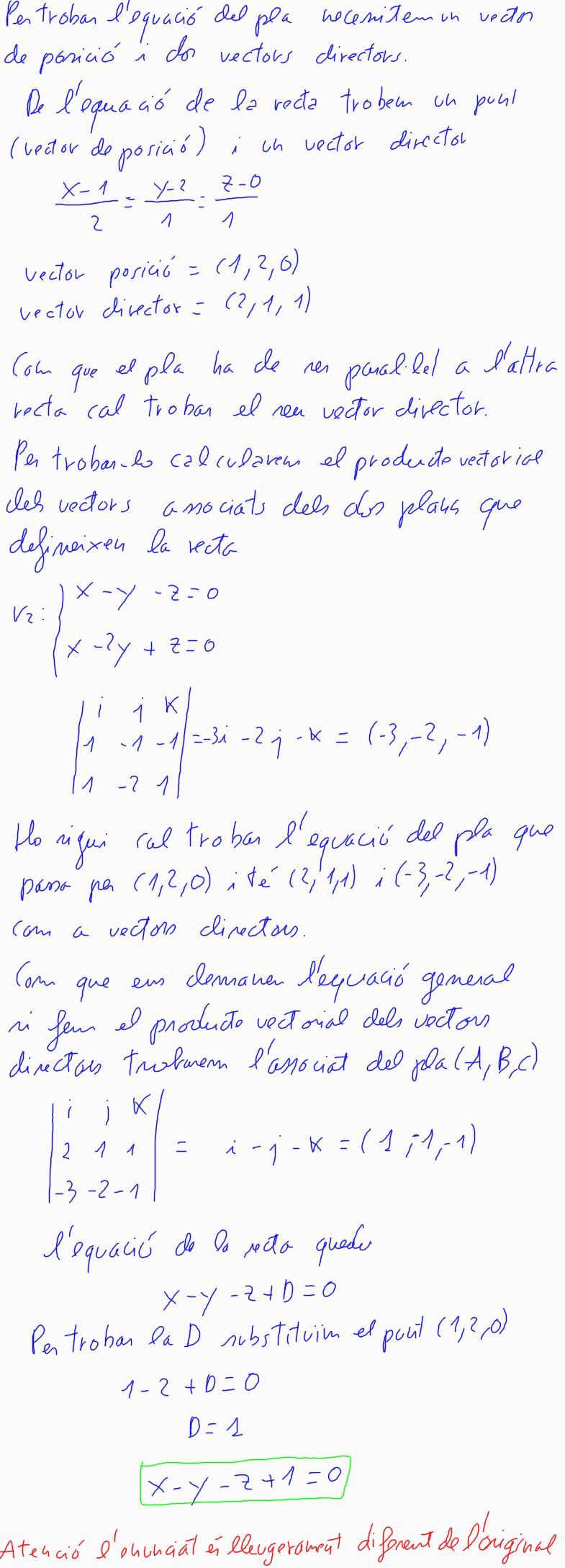 (2010-juny-1) 1. Trobeu l'equació general (és a dir, de la forma Ax + By + Cz + D = 0) del pla que