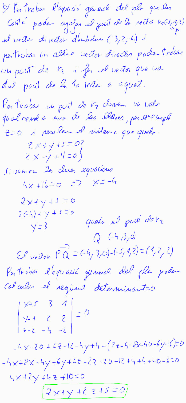 b) Trobeu l'equació general (és a dir, de la forma Ax + By + Cz + D = 0) del pla que