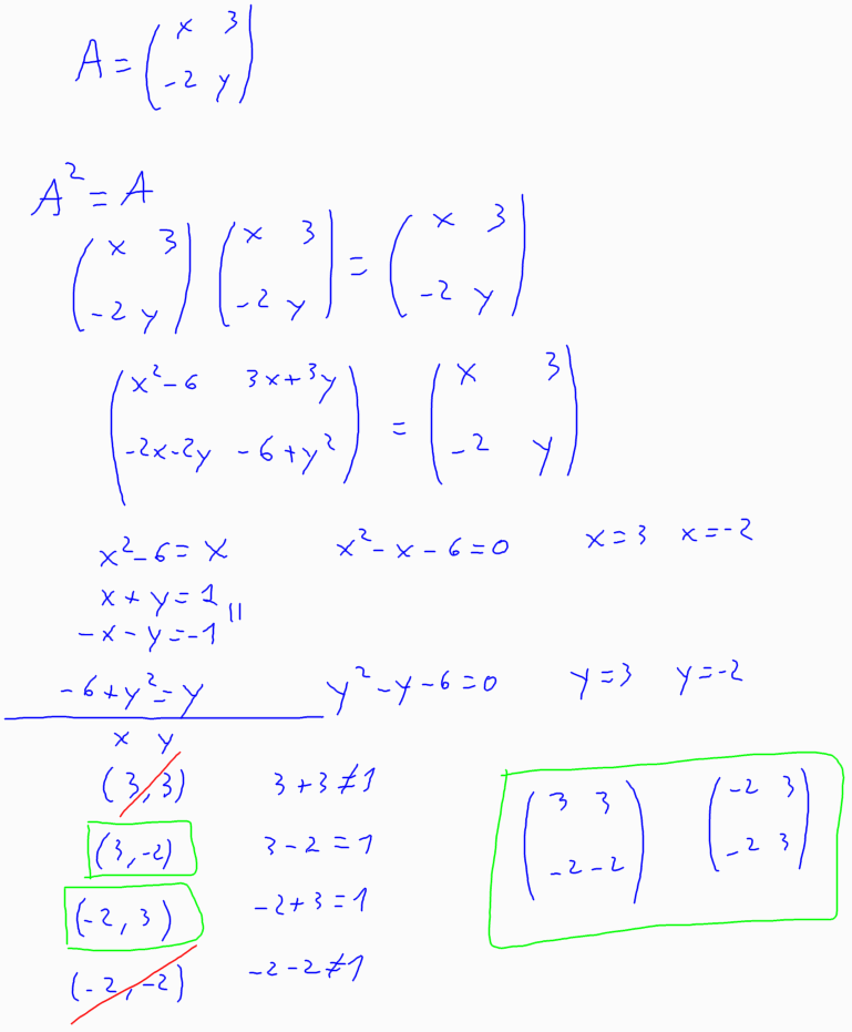 (2010-juny-1) 6. Sigui . Trobeu els valors de les variables x i y perquè es compleixi que A2 = A
