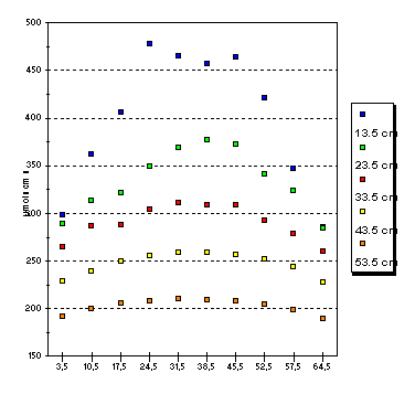 a diferents alçades per una línea situada a 17.5 cm del fons.