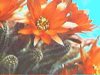 | Tija: Una d'aquestes tiges, generalment amb 8 costelles i espines denses, quasi blanques, desenvolupa a l'estiu vàries flors. Flor: Desenvolupa grans i belles flors de color vermell. |