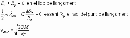 S'anomena velocitat d'escapament la mínima velocitat amb que cal llançar un cos verticalment cap amunt, des de la superfície d'un planeta, per tal que escapi de l'atracció gravitatòria del planeta i no torni a caure. Si des de la superfície un planeta llancem un cos cap amunt, aquest s'elevarà fins a una certa altura. D'acord amb la conservació de l'energia mecànica i entenent que no hi ha friccions, en la pujada la seva energia cinètica disminuirà i la seva energia potencial augmentarà. En arribar al punt més alt tornarà a caure cap a la superfície disminuint la seva energia potencial i augmentant la seva energia cinètica. Tenint en compte que l'energia potencial gravitatòria s'anul·la a l'infinit, lloc en que la gravetat també s'anul·la, es tracta d'elevar el cos fins portar-lo a l'infinit arribant-hi amb la velocitat mínima, és a dir zero. Llavors es complirà que la seva energia potencial és zero, Ep=0 i que l'energia cinètica és zero, Ec=0 per tant l'energia mecànica del cos serà zero, Em=0. Tenint en compte que l'energia mecànica es conserva haurà de ser també zero en el moment del llançament:
