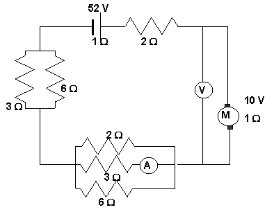i el motor una fcem de 10 V i una resistència interna de 1 W