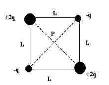 Sí, centre de quatre càrregues iguals, en els vèrtexs