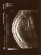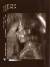 Comme vous pouvez le voir, je suis déjà trop grand pour tenir tout entier sur un seul cliché. Pour vous donner une idée, mon fémur mesure alors 3,4 cm. Pour cette même raison, nous n’avons pas de photo des échographies postérieures. Sachez tout de même qu’à la toute dernière, juste avant l’accouchement, la machine a indiqué par deux fois après avoir pris mes mensurations qu’il s’agissait d’une erreur, car je devais en principe peser 4 kilos 900 ! Pour savoir ce que j’ai réellement pesé, allez voir dans les « Actualités » du mois d’août 2006…